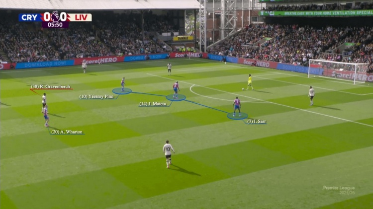 不过切尔西一役也证明斯洛特并非不会变通:把索博斯洛伊挪到右后卫,换上琼斯和维尔茨这两个“跑不死”,立马打出精妙配合——琼斯摆脱恩佐接赫拉芬贝赫传球,维尔茨和索博斯洛伊的站位牵制住库库雷利亚与凯塞多,为琼斯直塞萨拉赫创造了内切传中的空间: