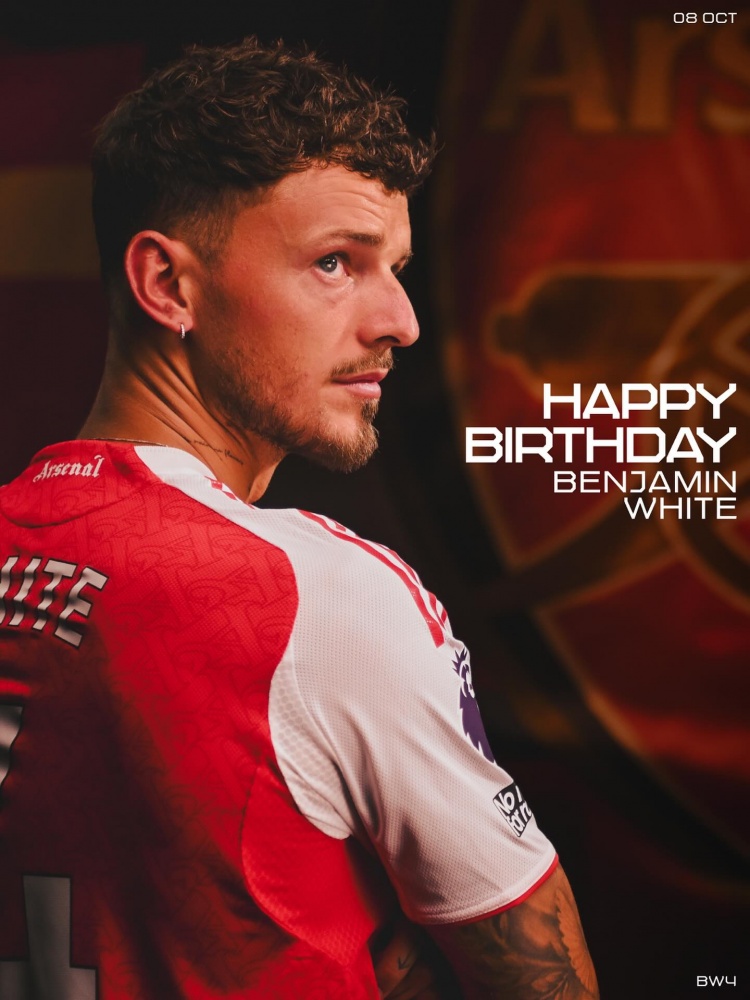10月8日讯 今天是阿森纳右后卫本-怀特的28岁生日,阿森纳为他送上祝福。