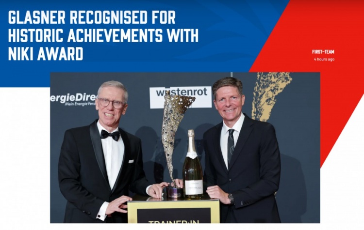 水晶宫主帅格拉斯纳在奥地利NIKI奖典礼被评为年度最佳教练
