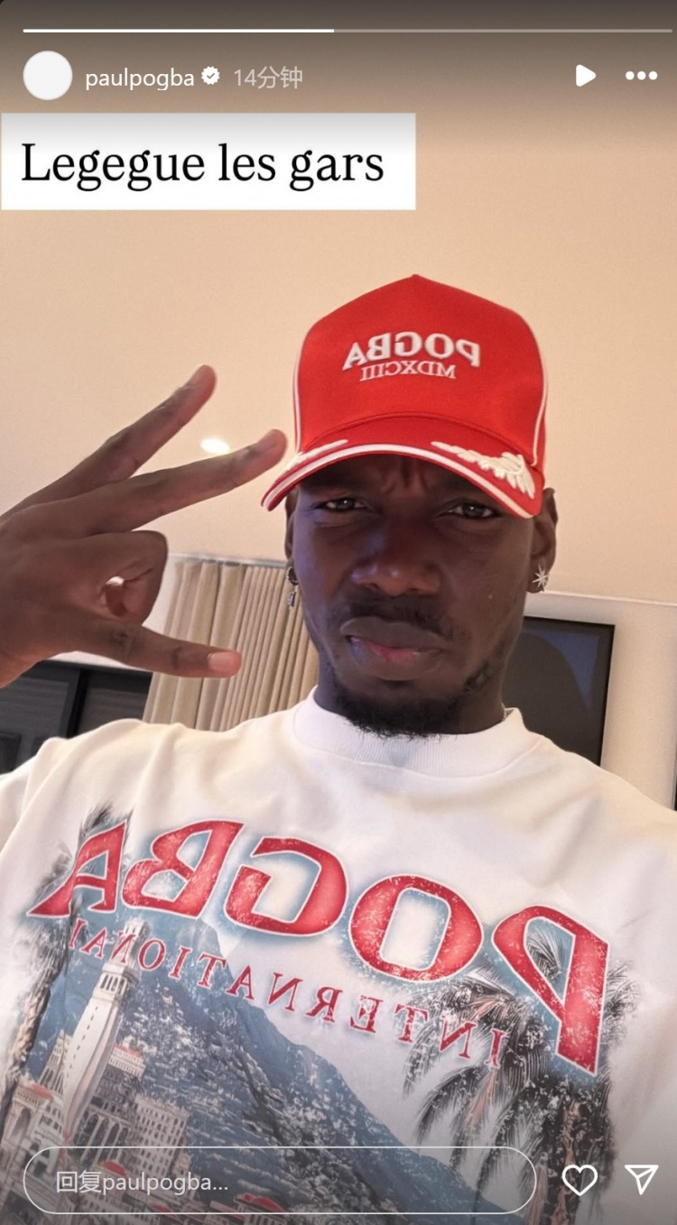 博格巴社媒晒出自拍照片,配文:“联赛来了,兄弟们。”似乎在暗示自己即将为摩纳哥在法甲联赛中出场。