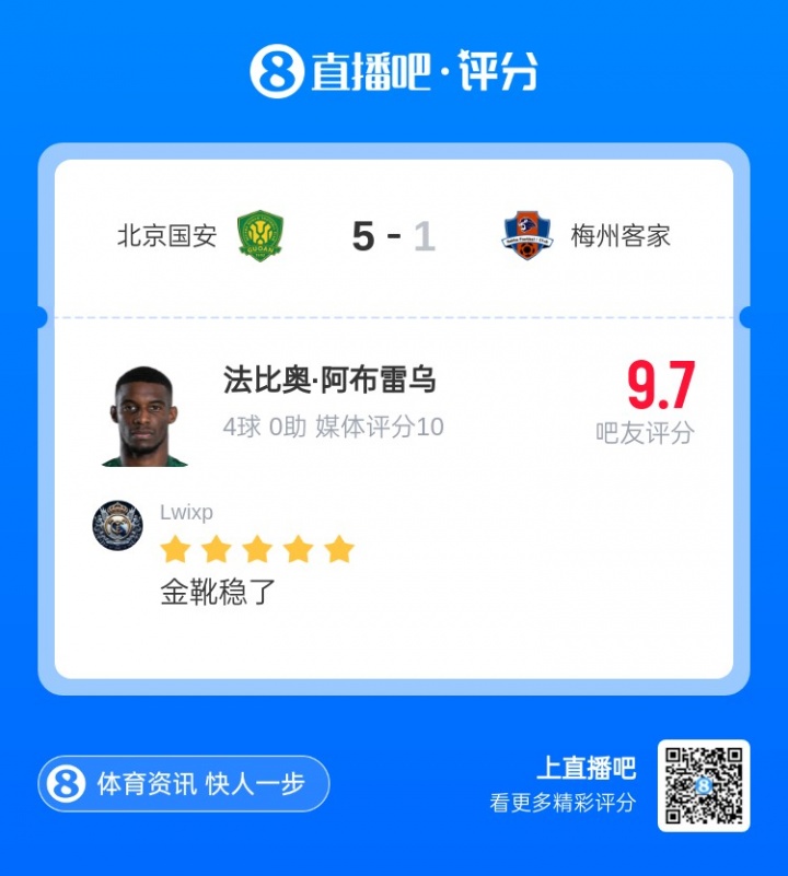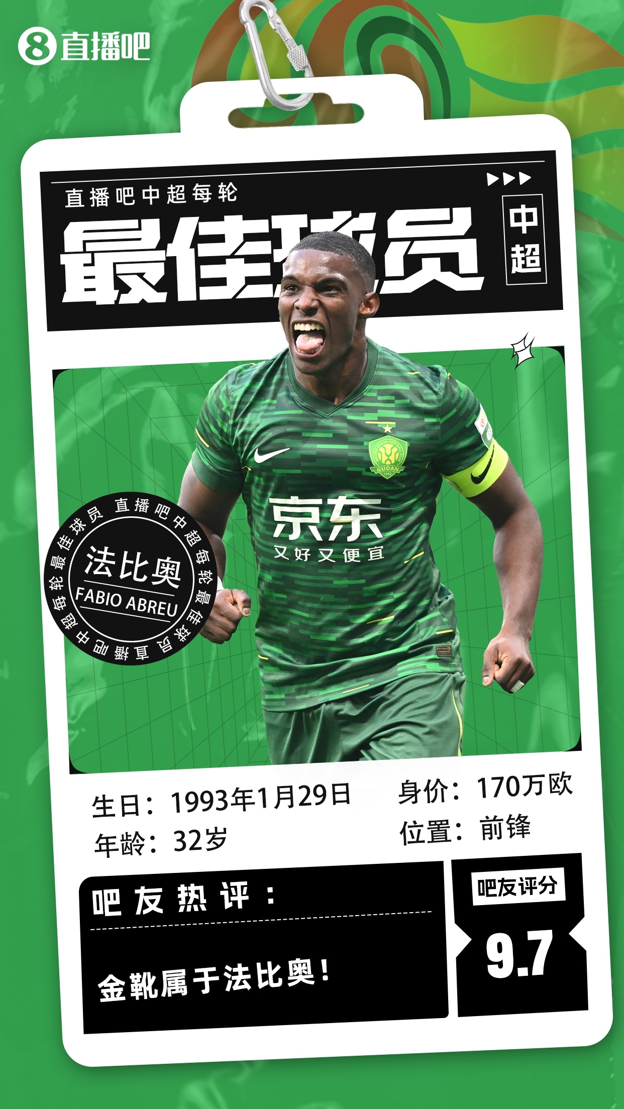 中超收官战,法比奥上演大四喜,帮助北京国安主场5-1大胜梅州客家,个人也以30场28球成为本赛季中超金靴,本轮最佳实至名归!