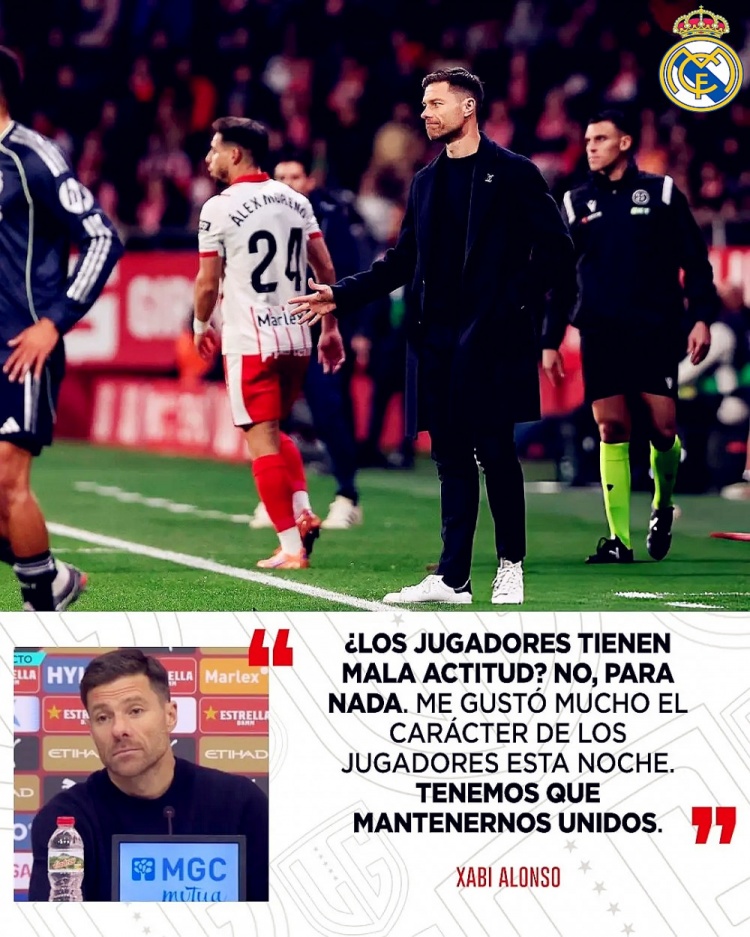 “球员态度不行?不,完全不是这样。我非常喜欢他们今晚展现出的性格。我们必须保持团结。”带着令人失望的结果离开赫罗纳,阿隆索依然不忘给球队打气。