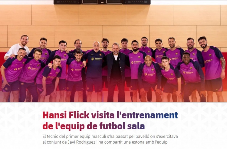 哈维·罗德里格斯今日带领巴萨室内足球队进行训练,意外地迎来了弗里克的到访。两位同行共度片刻,并与全体队员拍摄了一张集体照。