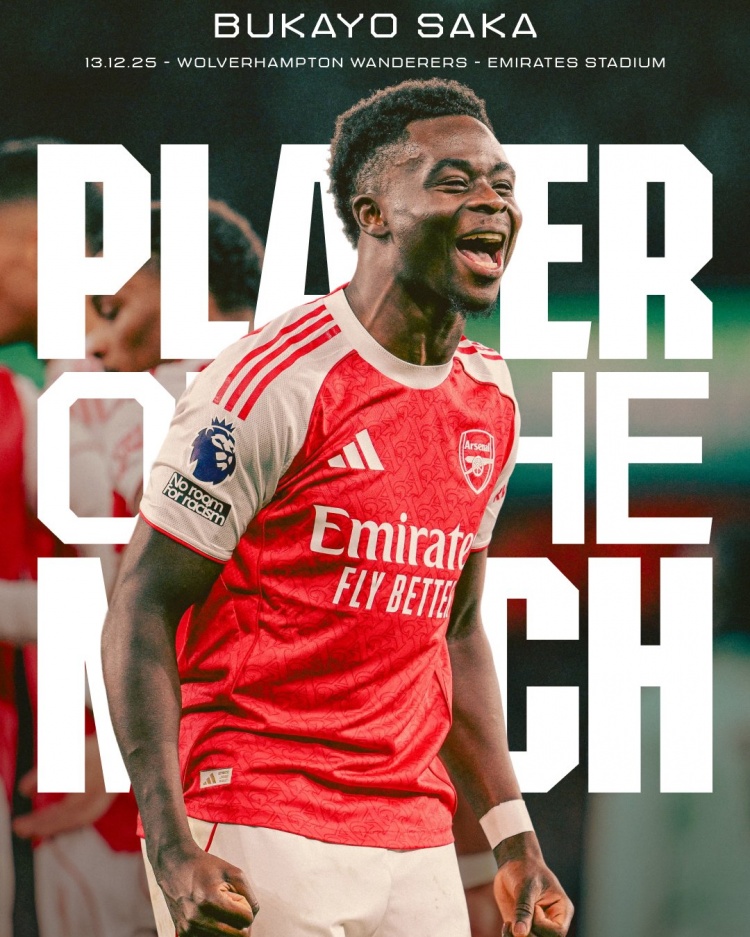 此役萨卡为阿森纳踢满全场,两次造对手乌龙,帮助球队取胜,阿森纳官方宣布,经过球迷的投票,萨卡当选本场比赛队内最佳球员。