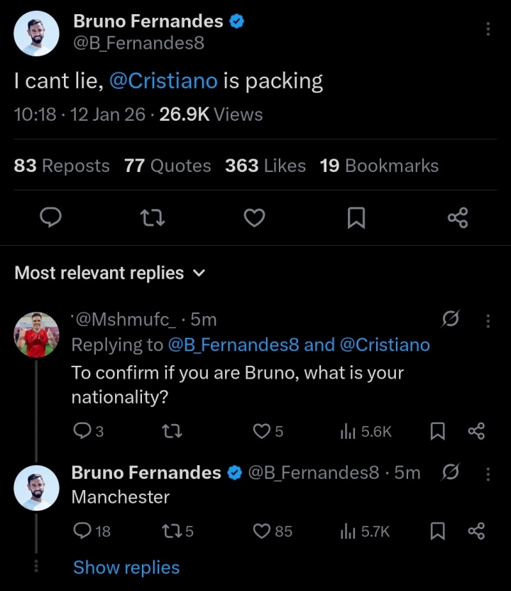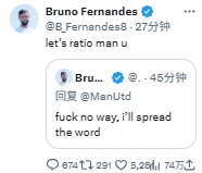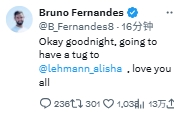 01月12日讯 足总杯第3轮,曼联1-2布莱顿惨遭一轮游。在比赛结束后的不久,B费的社媒账号遭到黑客盗号,目前仍在持续发布各种奇葩言论。