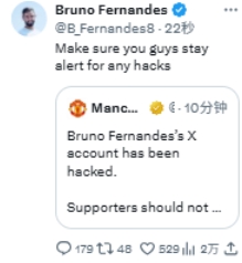 (转发曼联官方公告B费账号被盗推特)请大家务必保持警惕,严防黑客攻击。