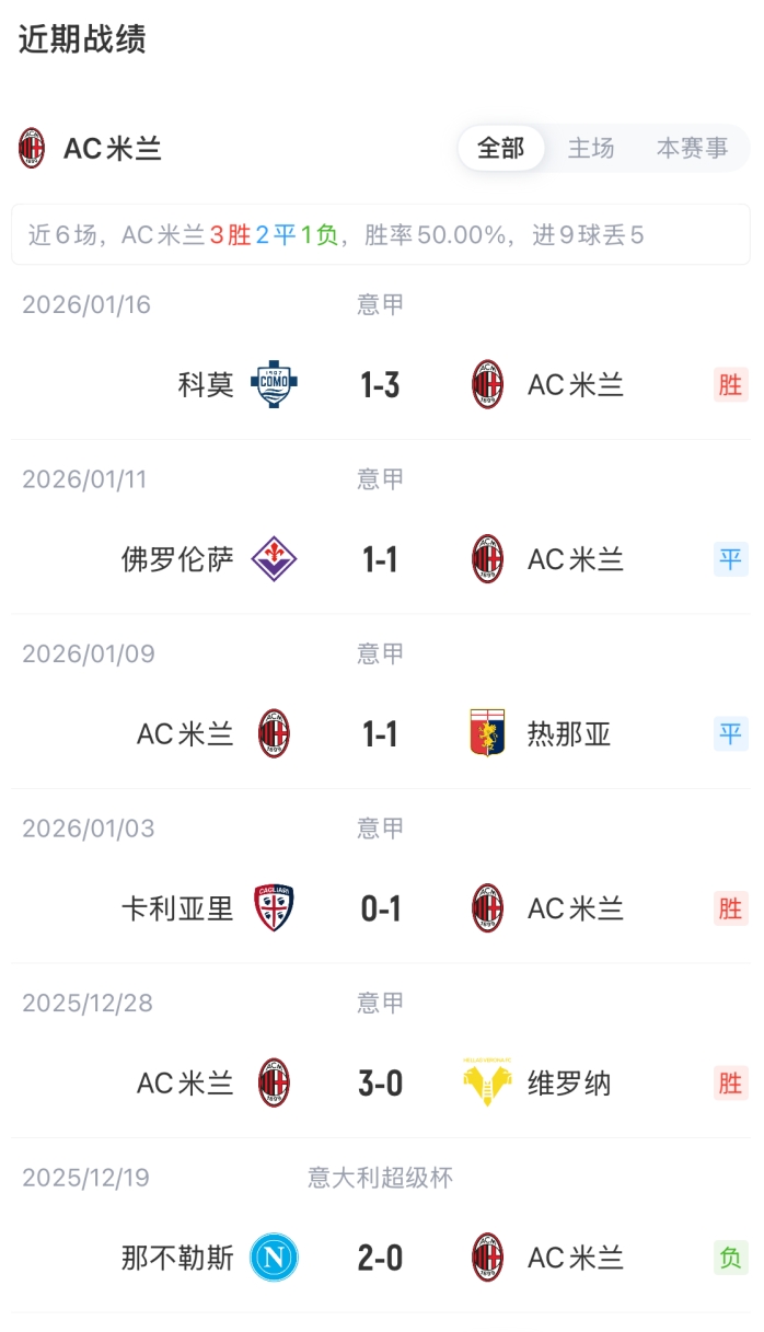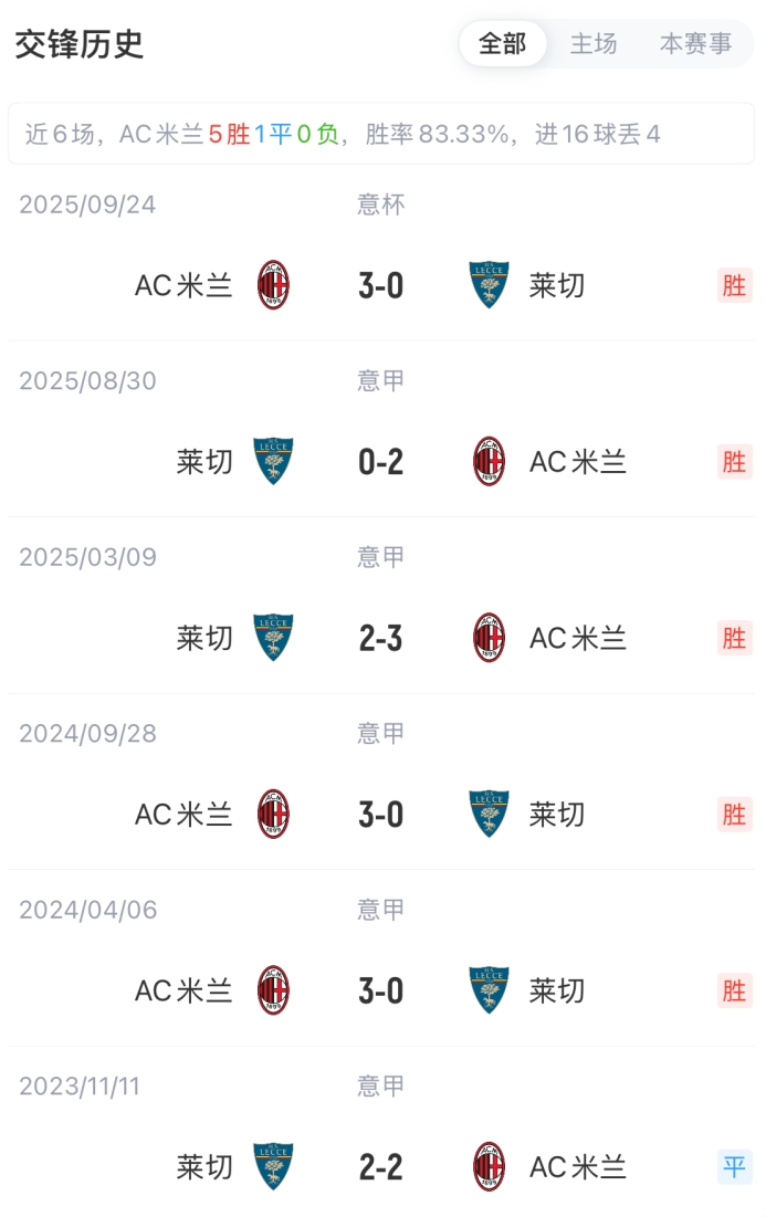米兰vs莱切首发:美队搭档莱奥、拉比奥特、里奇、亚沙里先发