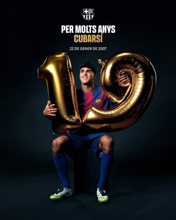 今日是库巴西19岁生日,巴萨社媒为其送上祝福:生日快乐