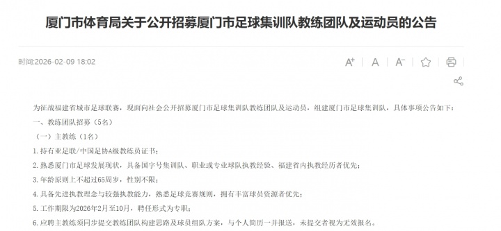 备战闽超!厦门市面向社会公开招募教练与运动员,组建足球集训队
