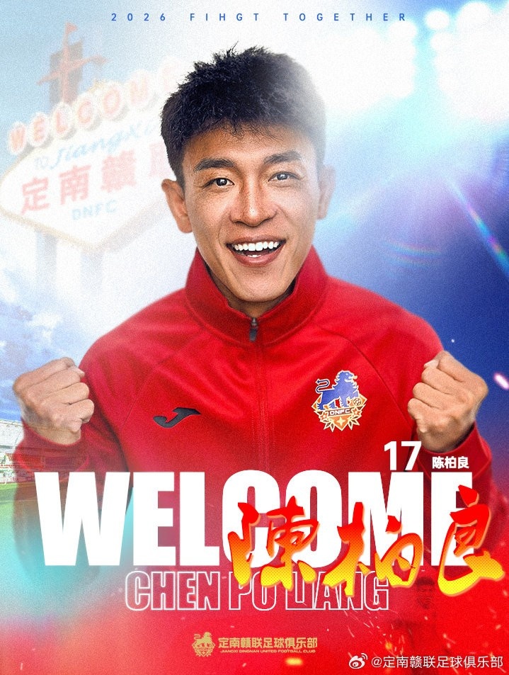 2026赛季陈柏良转会至定南赣联,将身穿17号球衣代表定南赣联参加中甲联赛,欢迎陈柏良加入定南赣联足球俱乐部。
