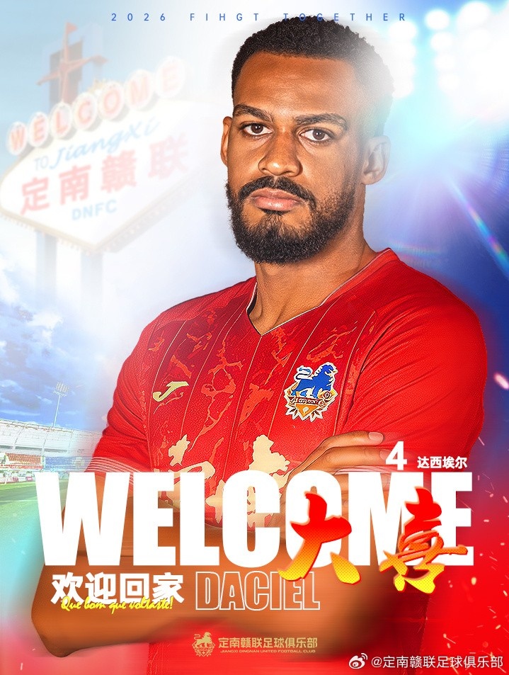 2026赛季达西埃尔转会至定南赣联,将身穿4号球衣代表定南赣联参加中甲联赛,欢迎大喜加入定南赣联足球俱乐部。