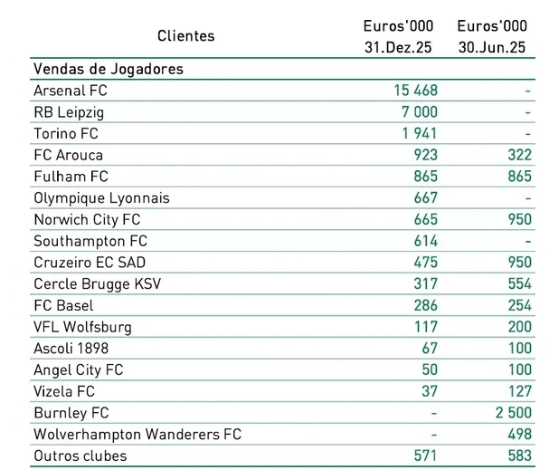 葡萄牙体育核算,出售约克雷斯带来的收益为4100万欧元,同时还产生770万欧元相关出售成本,用于支付考文垂的团结机制费用与二次转会分成。