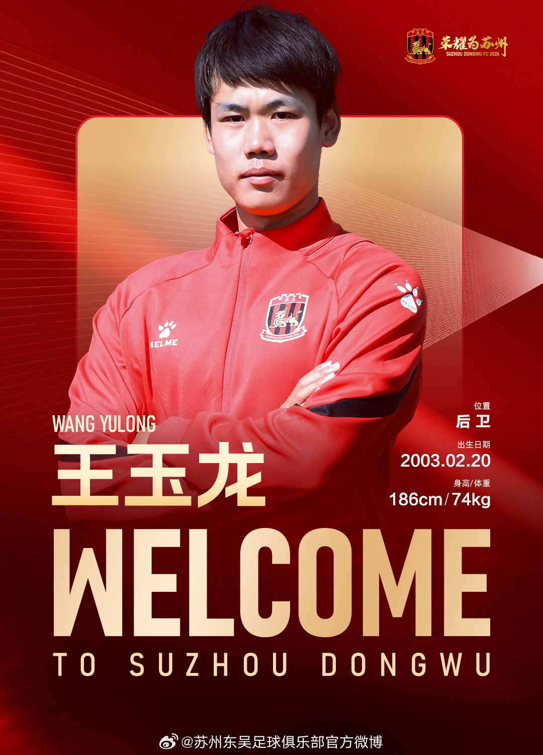 经友好协商并达成一致,球员王玉龙正式加盟苏州东吴足球俱乐部,为苏州东吴出战新赛季中甲及足协杯赛事。