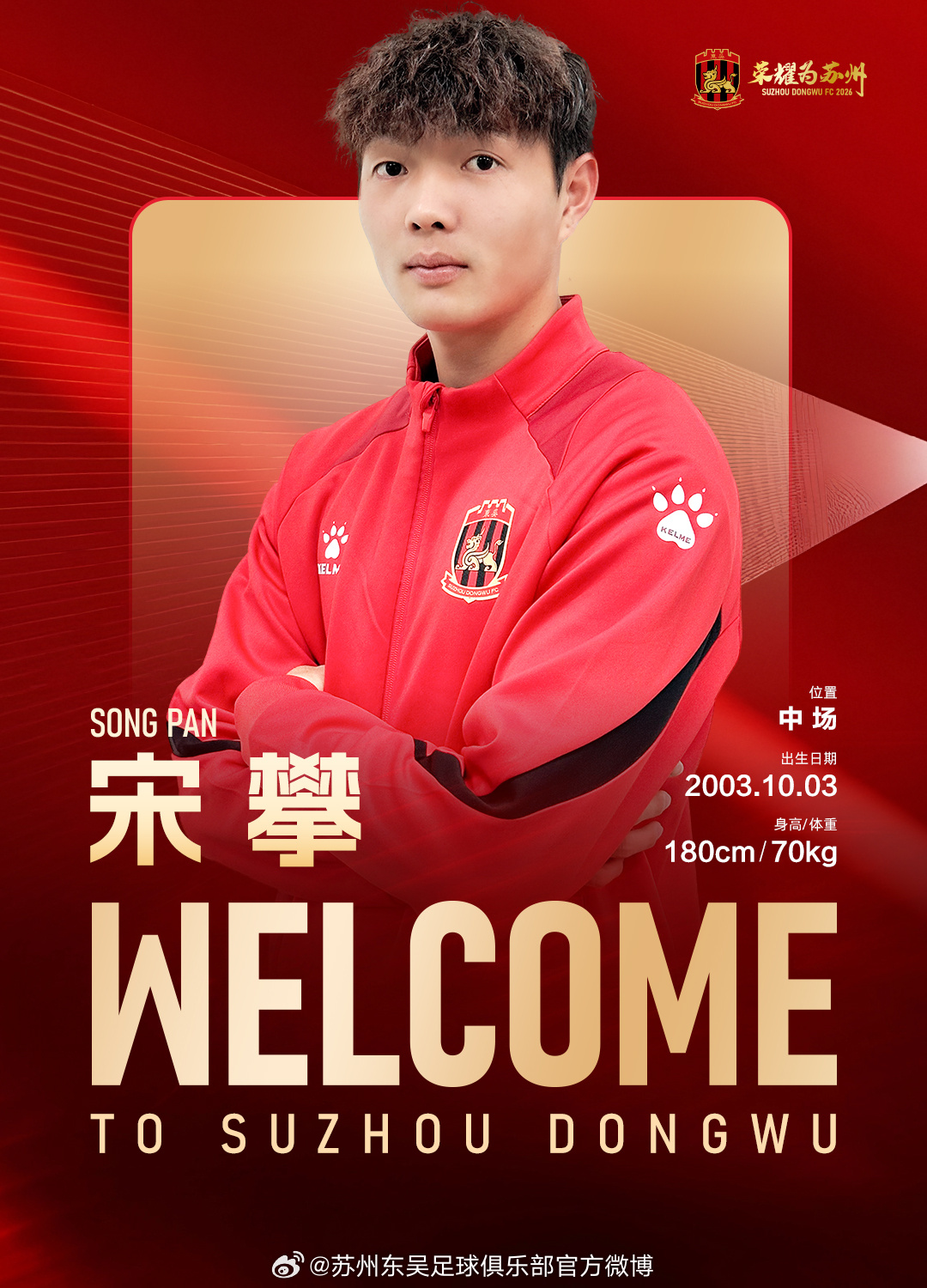 经友好协商并达成一致,球员宋攀正式加盟苏州东吴足球俱乐部,为苏州东吴出战新赛季中甲及足协杯赛事。
