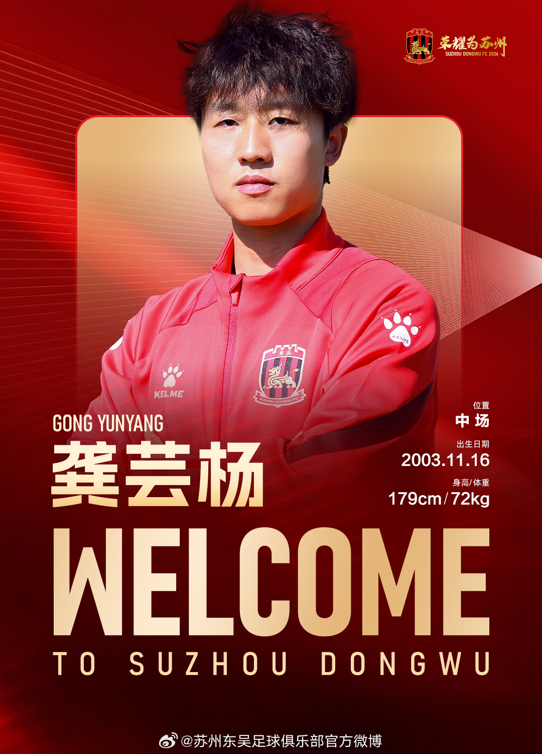 经友好协商并达成一致,球员龚芸扬正式加盟苏州东吴足球俱乐部,为苏州东吴出战新赛季中甲及足协杯赛事。
