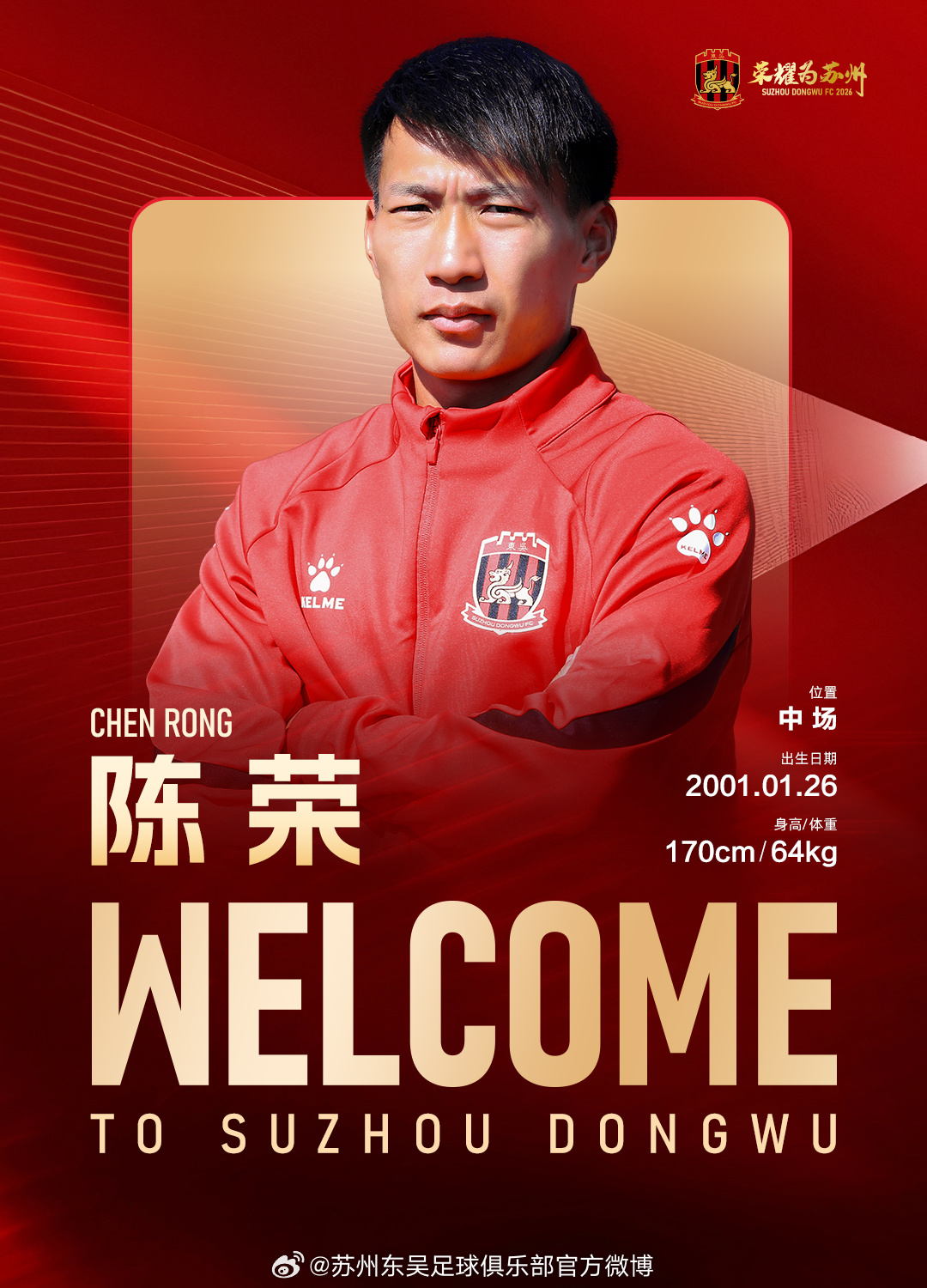 经友好协商并达成一致,球员陈荣正式加盟苏州东吴足球俱乐部,为苏州东吴出战新赛季中甲及足协杯赛事。