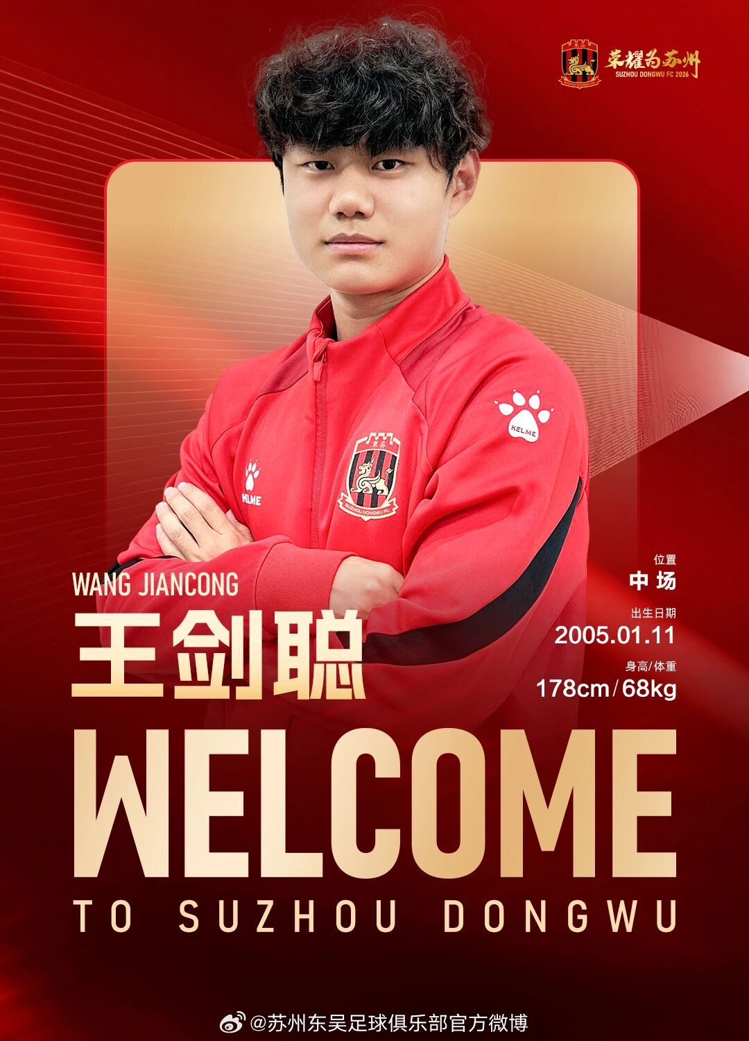 经友好协商并达成一致,球员王剑聪正式加盟苏州东吴足球俱乐部,为苏州东吴出战新赛季中甲及足协杯赛事。