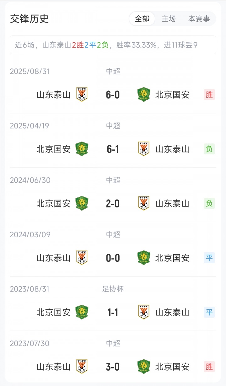 中超首轮比赛,泰山3-0大胜辽宁铁人,目前球队积负3分,暂列中超第11位。国安首轮则是2-0击败武汉三镇,目前球队负2分,排在中超第8位。本场比赛若分胜负,两队之间的胜者将使积分不再是负数。