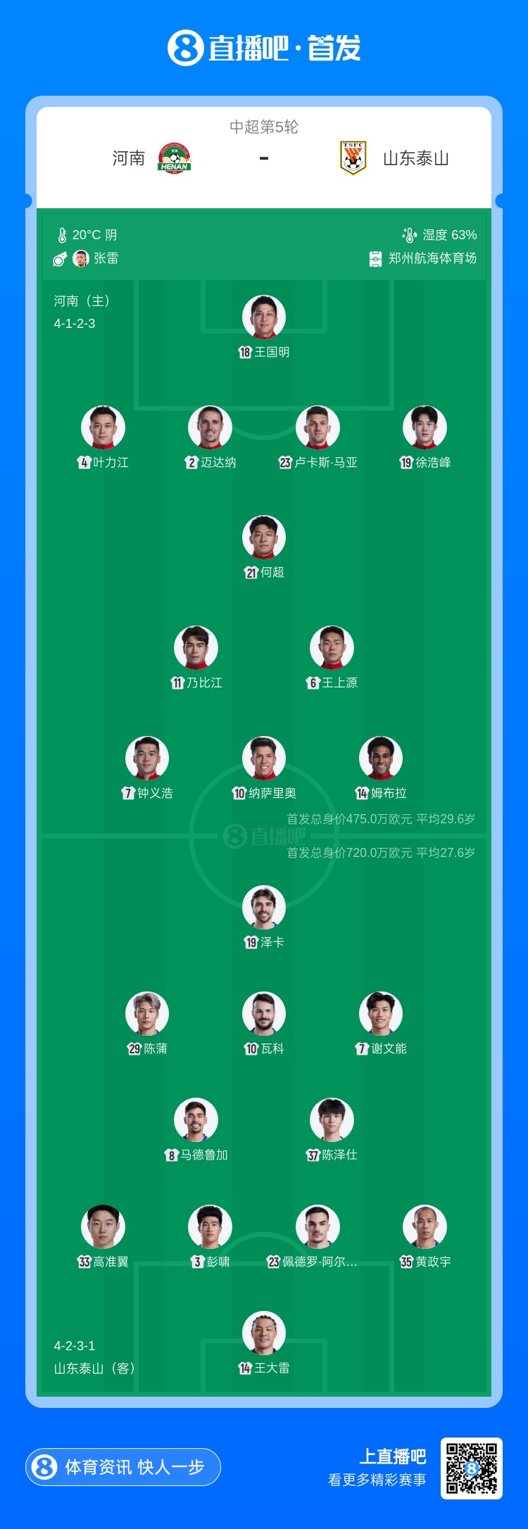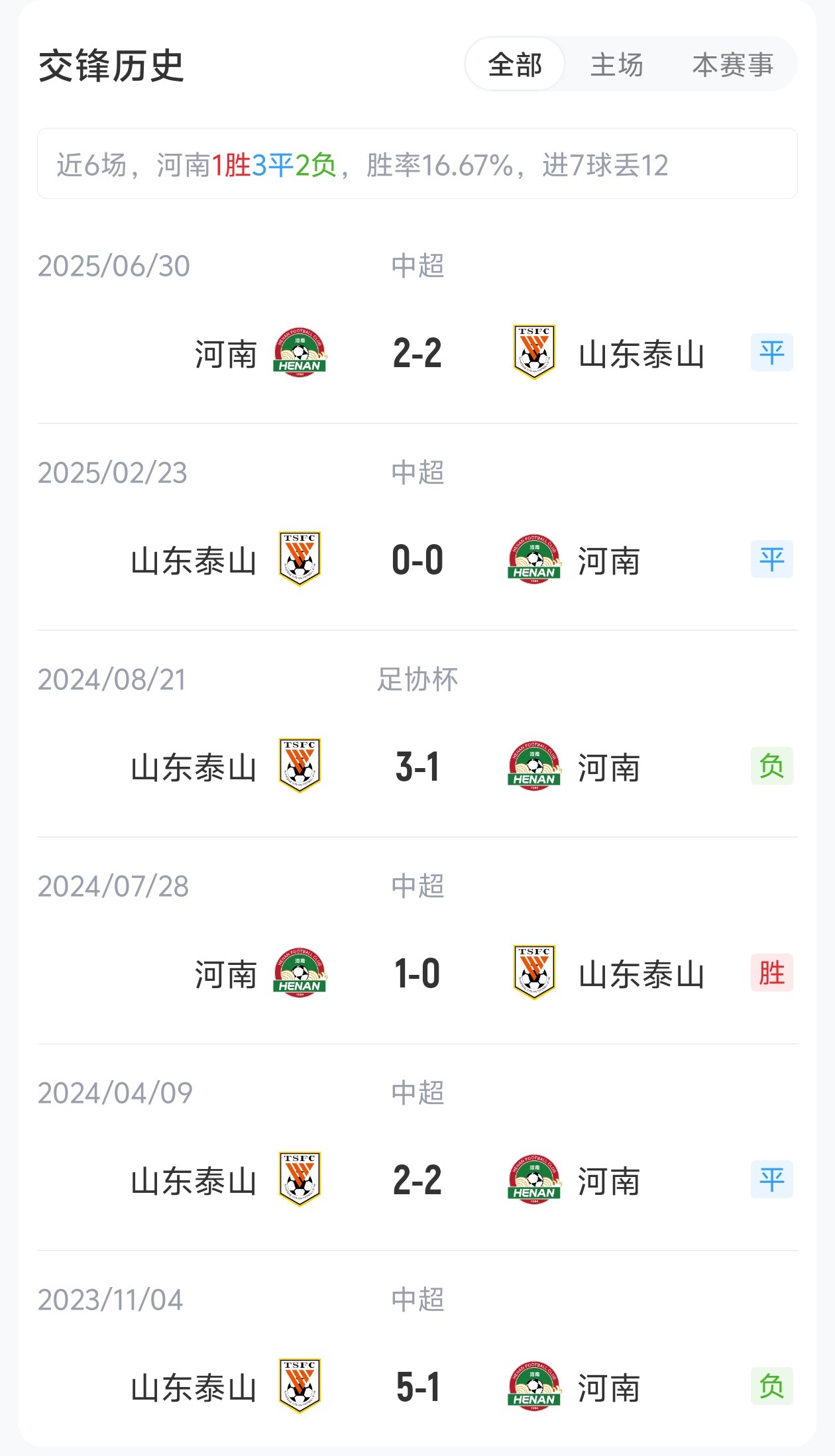 前4轮河南2胜1平1负,积1分(河南被罚6分开局)暂居第十;泰山2胜2负,积0分(泰山被罚6分开局)暂居第十一。上赛季两回合交手,双方均握手言和。