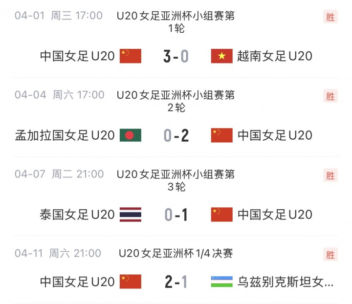 04月11日讯 北京时间21:00,U20女足亚洲杯1/4决赛,中国女足U20战胜乌兹别克斯坦女足U20,晋级四强,中国队将在半决赛面对日本女足U20,争夺一个决赛名额。比赛将于北京时间4月15日21:00打响。