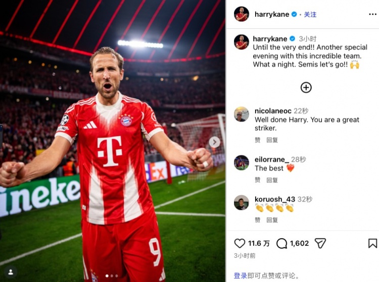 今日凯恩更新社媒,晒出多张照片并配文写道:“直到比赛最后一刻!与这支强力之师一同度过了一个特别的夜晚。多么出色的一晚!半决赛冲冲冲!”