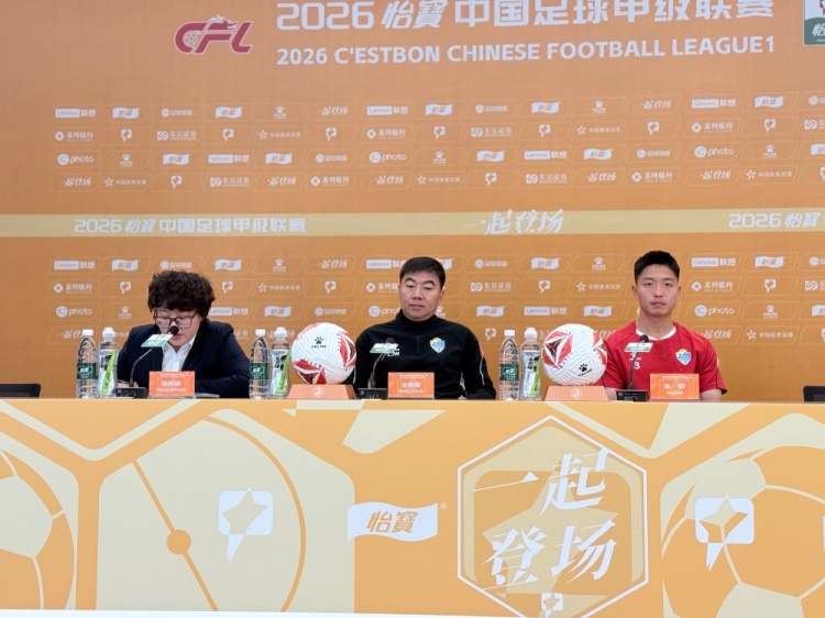 【赛前声音】4月17日下午,广西恒宸主教练刘俊威携球员苑修诚出席苏州东吴vs广西恒宸赛前新闻发布会。