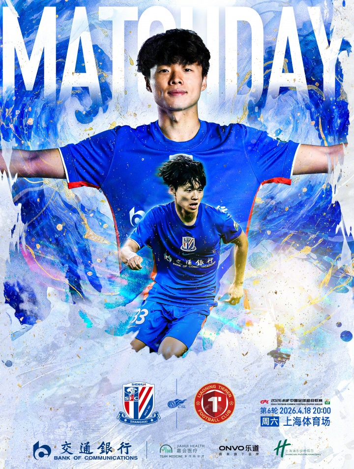 目前中超积分榜上,上海申花3胜2平积1分,位列第11;辽宁铁人2胜1平2负积7分,位列第5。
